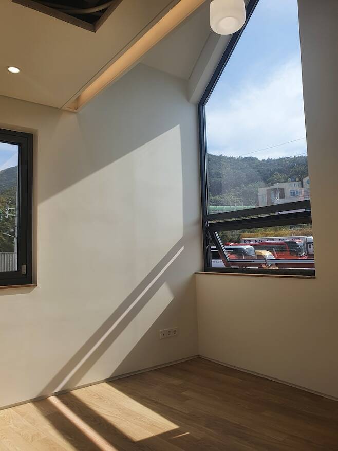 온휴당은 중정을 중심으로 1대의 주차 공간을 포함하여 ㄷ자 구조로 지었어요. 실거주는 ㄱ자 구조입니다. 뻔할 수도 있지만 저희는 살면서 실용적인 구조를 원했어요. 1/2층으로 총 45평이며, 집 내부 또한 좁아보일 수 있는 구조지만 세 식구여서 그런지 아직까지는 만족하며 살고 있어요.