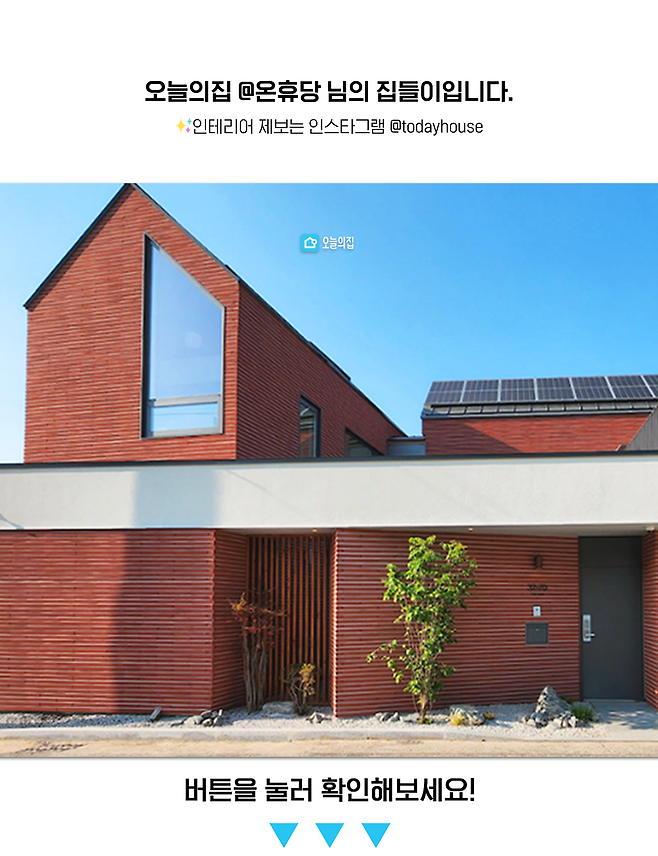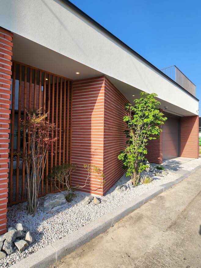외장재는 롱브릭타일 탱고레드색으로 시공했어요. 처음 남편과 외관 색상에 대해 먼저 이야기를 나누었어요. 그레이 또는 레드 계열로 하자! 라고 생각만 하다가, 우연히 다른 동네에 적벽돌 주택을 보고 저거다! 싶었어요. 남편과 의견이 맞아서 쉽게 결정할 수 있었죠. 지금도 탱고레드색은 진리입니다 :)