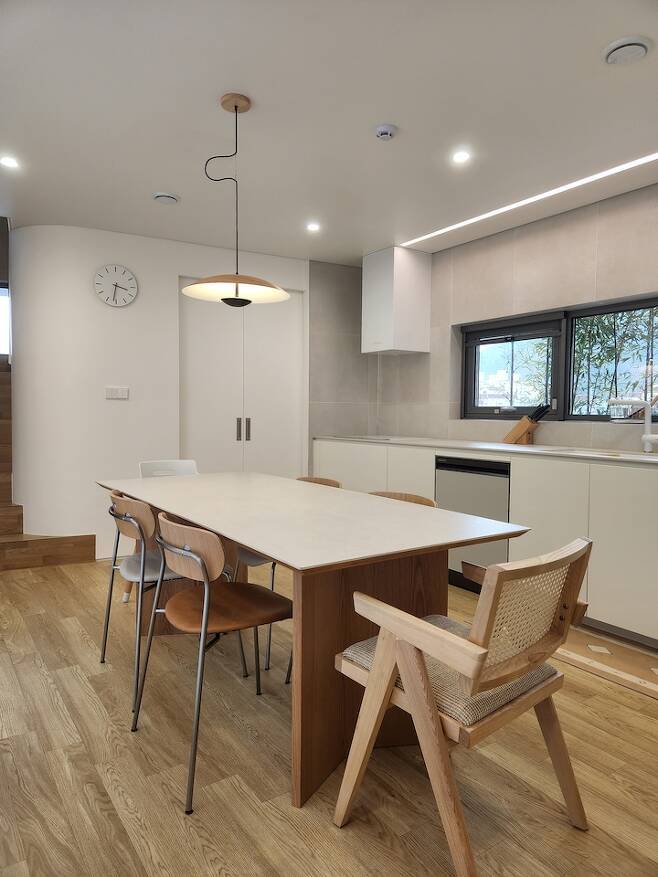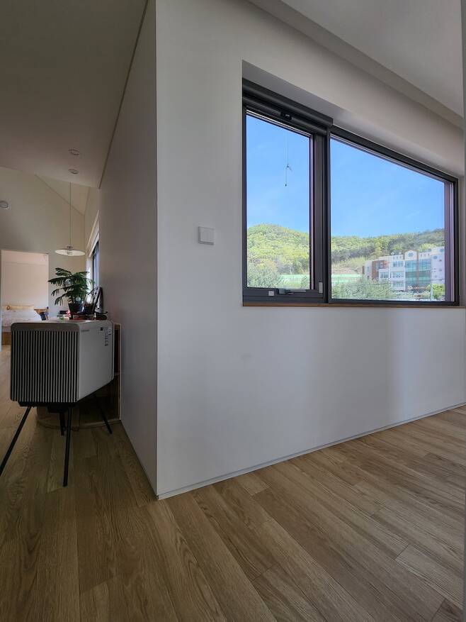 온휴당은 중정을 중심으로 1대의 주차 공간을 포함하여 ㄷ자 구조로 지었어요. 실거주는 ㄱ자 구조입니다. 뻔할 수도 있지만 저희는 살면서 실용적인 구조를 원했어요. 1/2층으로 총 45평이며, 집 내부 또한 좁아보일 수 있는 구조지만 세 식구여서 그런지 아직까지는 만족하며 살고 있어요.