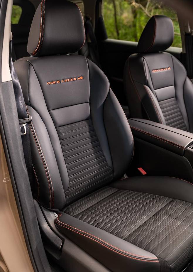 록 크리크 에디션의 외관은 광택 블랙 그릴과 17인치 블랙 휠, 파켄 와일드 피크 올 터레인 타이어 등으로 강인한 이미지를 구현했다. 특히 라바 레드 액센트를 곳곳에 적용해 시각적 역동성을 높였다.