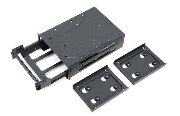 2.5"와 3.5" 스토리지 장착 지원은 2.5" 브라켓을 통해 2개, 3.5"와 2.5" 겸용 트레이를 통해 2개로 총 4개를 장착할 수 있다.