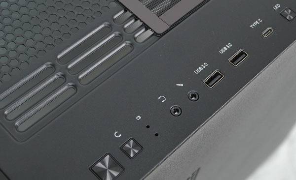 2개의 USB 3.0 Type-A 포트와 1개의 USB Type-C 포트, 오디오잭, 전원/ 리셋 버튼과 전원/ HDD LED 등이 갖춰졌다. LED 버튼의 경우 내부의 ARGB LED 허브를 통해 자체적으로 다양한 패턴과 색상을 조정할 수 있고, 메인보드나 다른 ARGB LED 허브와 연결해 동기화할 수 있다.