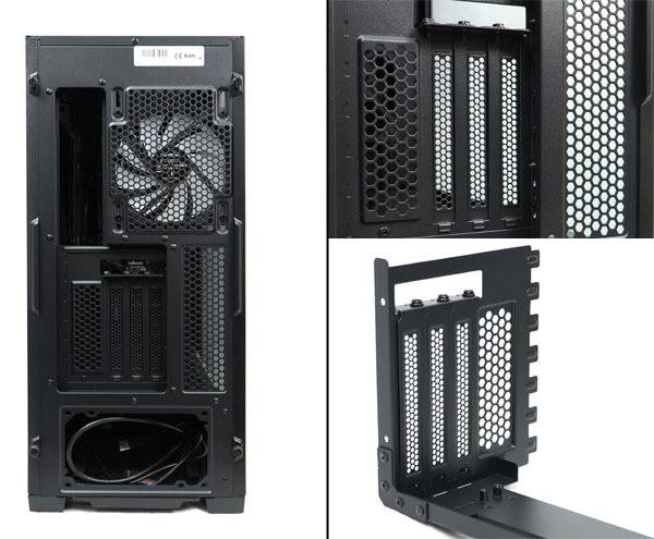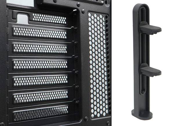 확장 카드를 지면과 수평으로 장착하는 전통적인 방식의 PCI 슬롯은 총 7개가 제공되며, 이 중 하나는 전면 LCD 패널의 HDMI 신호와 USB 전력 케이블 정리를 위한 홀이 구성되어 있다. 확장 카드, 주로 그래픽 카드의 무게로 인한 시스템 손상을 방지하기 위한 지지대가 기본 제공된다.