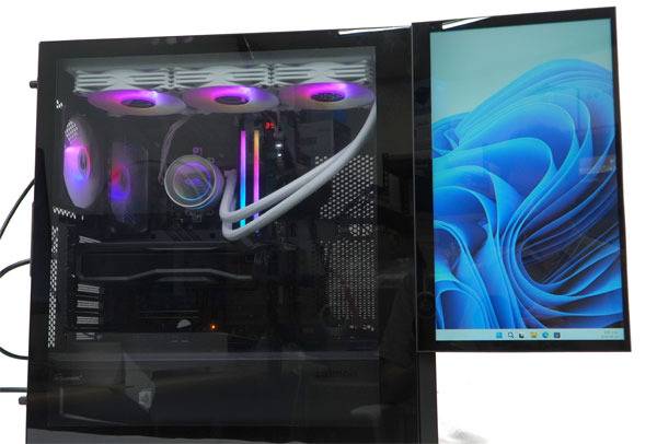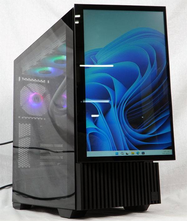 이 경우 강화 유리 패널과 함께 전면 패널을 수평 배치해 케이스 내부의 튜닝과 어울리는 에니메이션 재생, 혹은 HWINFO 등의 시스템 모니터링 앱, 게임 컴패니언 앱 등을 실행해 시스템 활용도를 개선하는 등의 방식으로 활용할 수 있다.