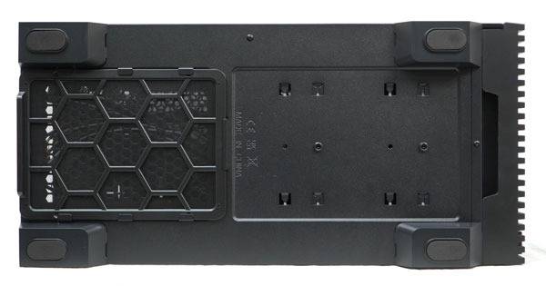 하단에는 슬라이드형 먼지 필터를 탑재해 PSU 공기 흡입부를 보호하며, 하단 전면부에 3.5"와 2.5" 겸용 트레이의 위치 조정 및 고정을 위한 나사의 모습도 확인할 수 있다.