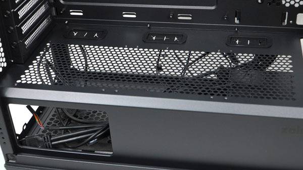 마그네틱 고정 방식의 먼지 필터를 부착해 먼지 유입을 방지하며, 내부 프레임의 해당 위치에는 듀얼 120mm 쿨링팬 장착이 가능해 자연 대류보다 강화된 냉각 성능을 구현할 수 있다. 메인보드의 CPU 장착부 및 전원부 발열 배출을 돕고, 서드파티 쿨러 사용시 백플레이트 장착 및 탈거드의 편의성을 위힌 홀도 크게 구성한 모습을 볼 수 있다.
