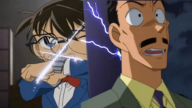 이 장면을 보라. 명탐정 코난이 범죄조직의 테러로 아이 모습이 된 뒤 여자친구의 아빠, 그러니까 예비 장인어른 격인 유명한 탐정에게 마취총을 쏘는데 수도 없이 쓰러지는 유명한 탐정의 뒤편에서 코난은 오늘도 음성변조로 추리를 펼친다.
