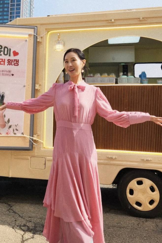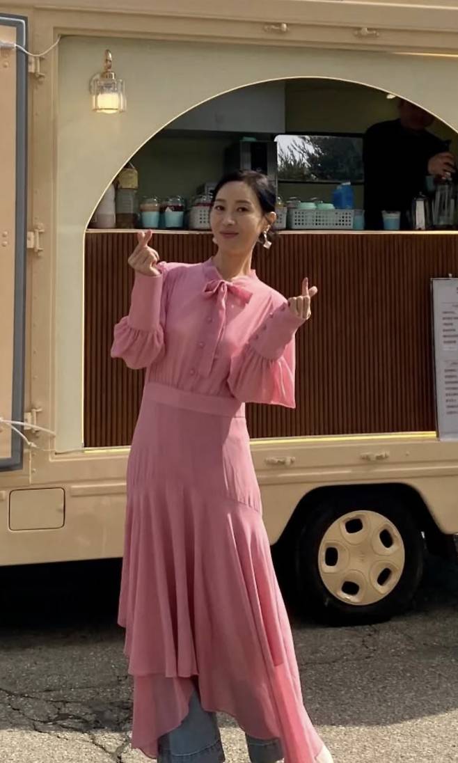 최근 공개된 사진 속 김희정은 화사한 핑크 컬러의 원피스를 선택해 시선을 사로잡았다.