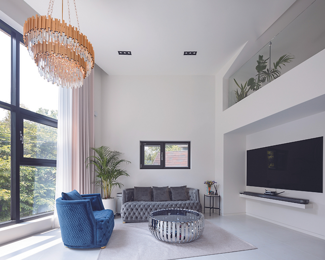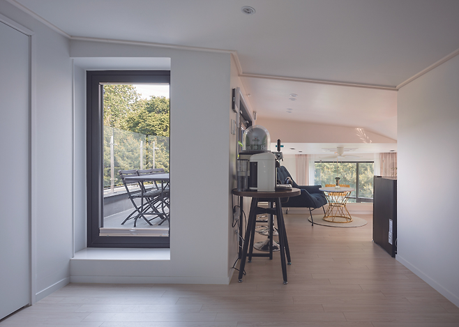 한편, 일조권의 영향으로 생성된 테라스는 부부를 위한 테라스와 가족을 위한 테라스로 분리해 공간을 연계했다. 이곳은 각각의 특징이 있고, 보이는 시선도 다르다.