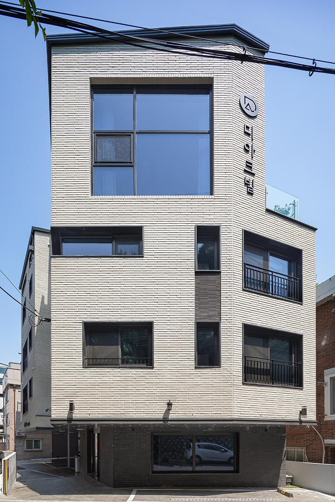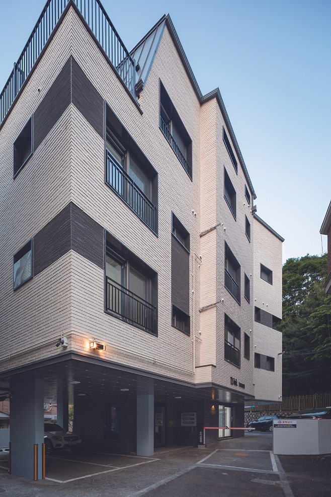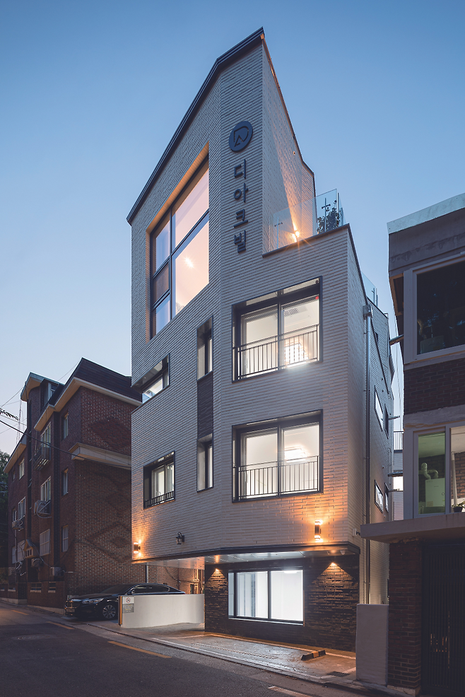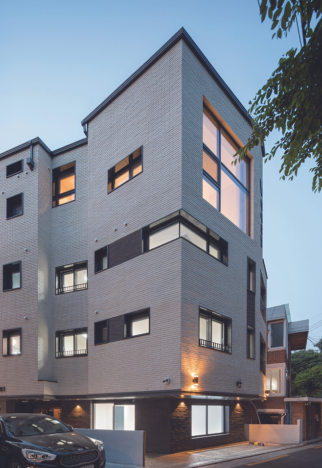 어린이대공원 변의 사계절을 잘 받아들이고, 숲의 푸르름과 잘 어울릴 수 있도록 하얀색 벽돌을 외장재로 선택했다. 80여 평의 대지에 지어진 이 건물은 주변의 붉은 벽돌 건물들과 차별화를 줘 더욱 돋보이는 외관을 가졌다.