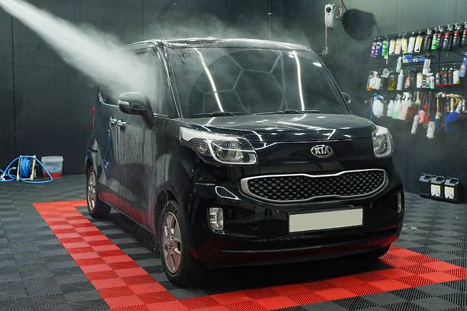 고압수 애벌세차가 끝났다면, 이제 본격적으로 ‘거품목욕’을 할 차례. 여기서 유의해야 할 점은 세차장 내 ‘폼건’ 사용 방법이다. 대체로 폼건 분사 후 바로 ‘미트질’을 진행하는 경우가 많다. 그러나 폼건에 들어간 세제는 오염물 제거보단 오염물을 불리는 ‘프리워시’ 제품으로, 세척에 한계가 있다. 따라서 세정력이 뛰어난 카샴푸를 이용해야 한다.