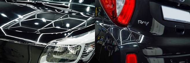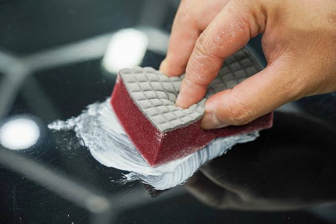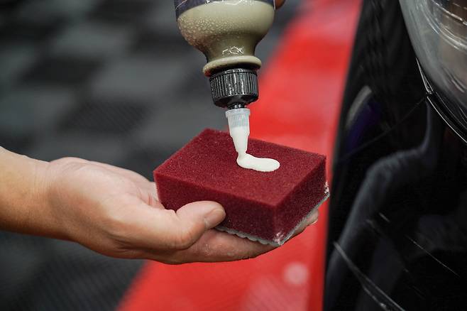 드라잉 작업이 끝났다면, 기본 세차과정은 모두 끝났다고 할 수 있다. 지금부터는 셀프 세차의 ‘꽃’이라고 할 수 있는 도장면 코팅 순서. 오늘 시공한 검은색 레이 모델은 도장면에 자잘한 스크래치가 있어, 코팅 전 전용 제품을 이용해 간단히 흠집을 제거하는 과정을 진행했다.