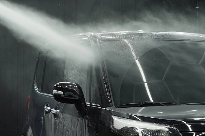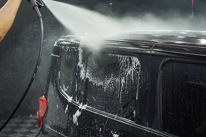 모든 과정이 끝났다면, 다시 고압수를 이용해 지붕에서부터 범퍼 쪽으로 내려오며 거품을 말끔히 씻어준다. 프리워시와 마찬가지로, 고압수를 위아래로 흔들며 분사하면 세차장 바닥에 있는 오염물질이 다시 도장면에 달라붙을 수 있다. 따라서 약 1~2m 정도의 간격을 두고 부위별로 ‘천천히’ 거품을 제거하는 게 가장 효과적이다.