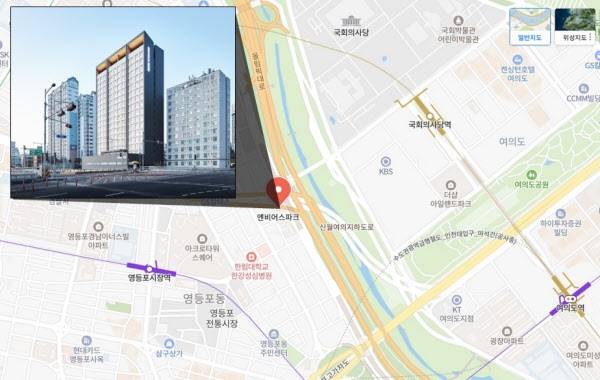 땅집고 취재 결과, 이 건물은 서울 영등포구 영등포동7가에 들어선 도시형생활주택 ‘엔비어스 파크’다. 지상 17층 총 236실로 2020년 11월 입주했다. 여의도 국회의사당에서 영등포 방향으로 여의2교를 지나다 보면 이 단지를 한 눈에 볼 수 있다. 동쪽으로 샛강을 끼고 있고, 걸어서 여의도 출퇴근이 가능한 곳이다.