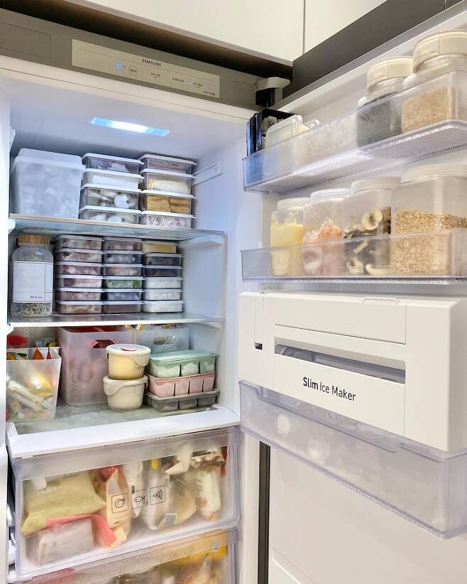 냉동실의 경우 냉동된 음식물들이 맞닿은 서로에게 냉기를 전해주기 때문인데요. 다닥다닥 붙여서 냉동실 가득 채워두면 냉기 보존에 훨씬 도움이 된답니다.