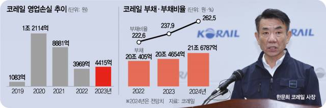 20일 서울경제신문이 입수한 코레일의 '2023 회계연도 결산보고서'에 따르면 지난해 코레일의 영업손실은 4415억 원으로 집계됐다.