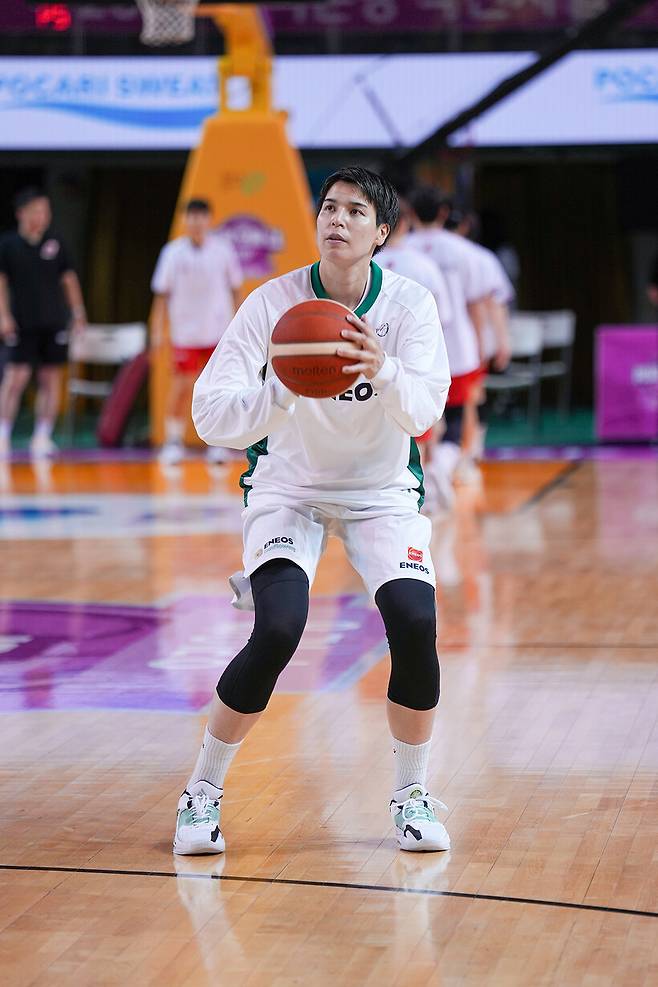오오. 방금 저 지도자라는 말을 알아들었어요. 지도자가 일본어로는 ‘시도샤’로 발음되는데, 알아들은 것 보면 한국에서 지도자를 할 수도 있겠는데요(웃음)? 당장 지도자를 할 생각은 없지만 자격증은 준비하고 있어요. 자격증 연수를 받으면 지금의 코치님, 감독님들의 말을 더 이해할 수 있지 않을까 하는 생각도 있고요. 2~3년 뒤에는 점점 은퇴가 다가올 테니 그쯤부터 잘 준비하고 싶어요. 한국의 지도자 대부분은 선수 출신이잖아요. 우리은행의 전주원 코치님도 제가 어렸을 때 전설이라고 생각했던 분이에요. 신기하죠. 이번에 만나서 반가웠어요.