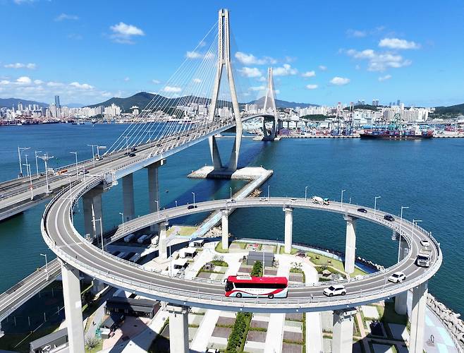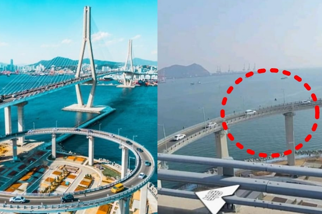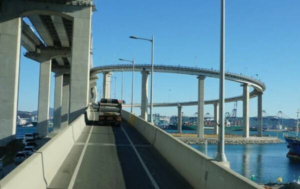 부산항대교는 2014년 개통한 해상 교량으로, 교량 중앙부 높이가 약 66m에 달해 부산항과 도심 전경을 한눈에 내려다볼 수 있을 정도다. 문제의 구간은 이 다리로 진입하는 회전램프로, 급경사를 직선으로 올리면 도로 시설 기준을 충족하기 어렵기 때문에 곡선 램프를 360도 가까이 회전하는 구조로 설계됐다. 실제 운전자들은 “가속이 조금만 붙어도, 벽을 뚫고 밖으로 튀어나갈 것 같은 느낌”이라고 표현할 정도로 체감 공포감이 크다고 말한다.