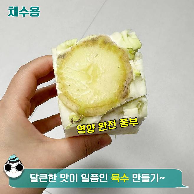 이 심지를 무심코 버리는 대신 채수 만들 때 사용하면 을매나 좋게요? 맛은 또 어떻구요. 육수를 낼 때 쓰면 달~큰한 맛이 더해져 완전 일품이에요.