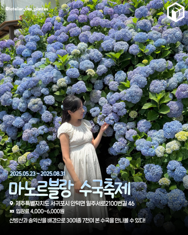 제주 마노르블랑 수국축제 - 제주특별자치도 서귀포시 안덕면 일주서로2100번길 46 - 2025.05.23 ~ 2025.08.31 - 입장료 4,000~6,000원