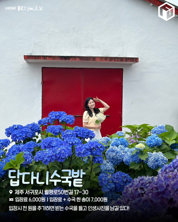 답다니수국밭 - 제주 서귀포시 월평로50번길 17-30 - 입장료 6,000원ㅣ입장료 + 수국 한 송이 7,000원