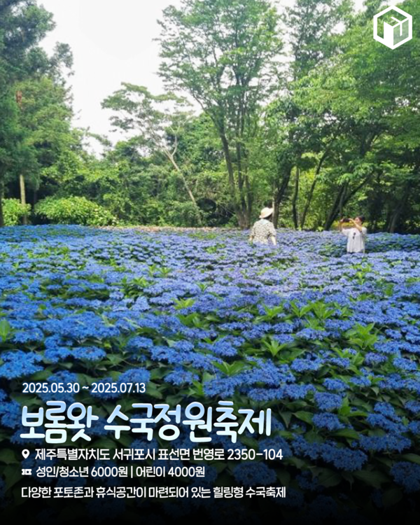 보롬왓 수국정원축제 - 제주특별자치도 서귀포시 표선면 번영로 2350-104 - 2025.05.30 ~ 2025.07.13 - 성인/청소년 6000원 | 어린이 4000원