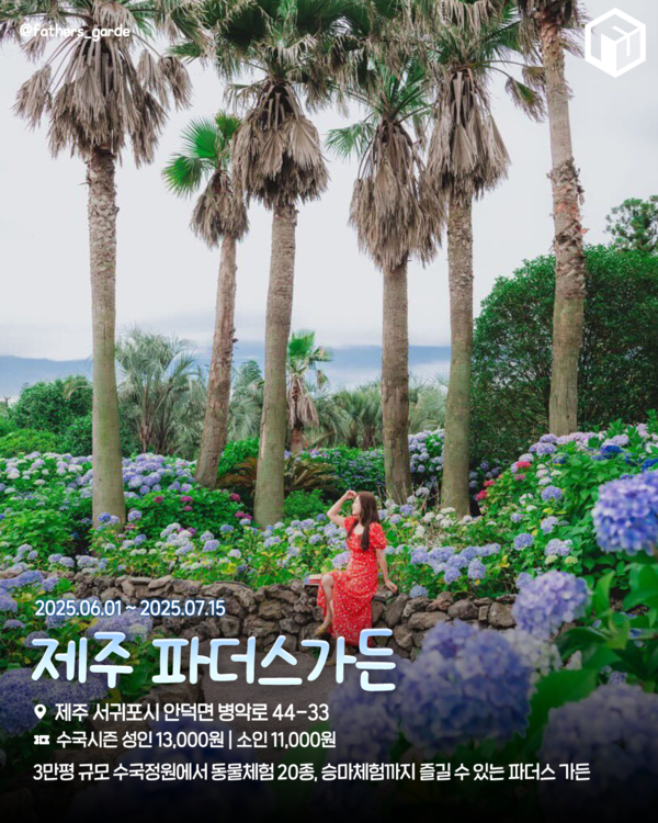 제주 파더스가든 - 제주 서귀포시 안덕면 병악로 44-33 - 2025.06.01 ~ 2025.07.15 - 수국시즌 성인 13,000원 | 소인 11,000원