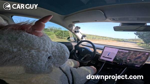 1차 테스트에서는 커다란 곰 인형을 운전석에 앉히고 FSD를 활성화했다. 운전석에는 분명 곰 인형이 앉아 있었지만, 운전자 모니터링 시스템은 이를 감지하지 못한 채 운행을 지속했다.