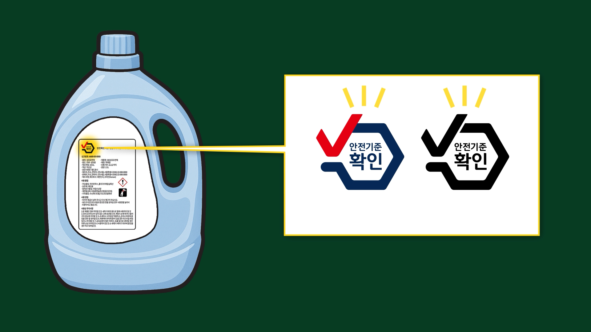 따라서 시중에서 판매되는 안전확인대상 생활화학제품은 법적 기준에 따라 안전하게 관리되고 있으며, 소비자가 확인할 수 있도록 제품 뒷면이나 앞면에 안전기준 확인 마크가 표시되어 있습니다.