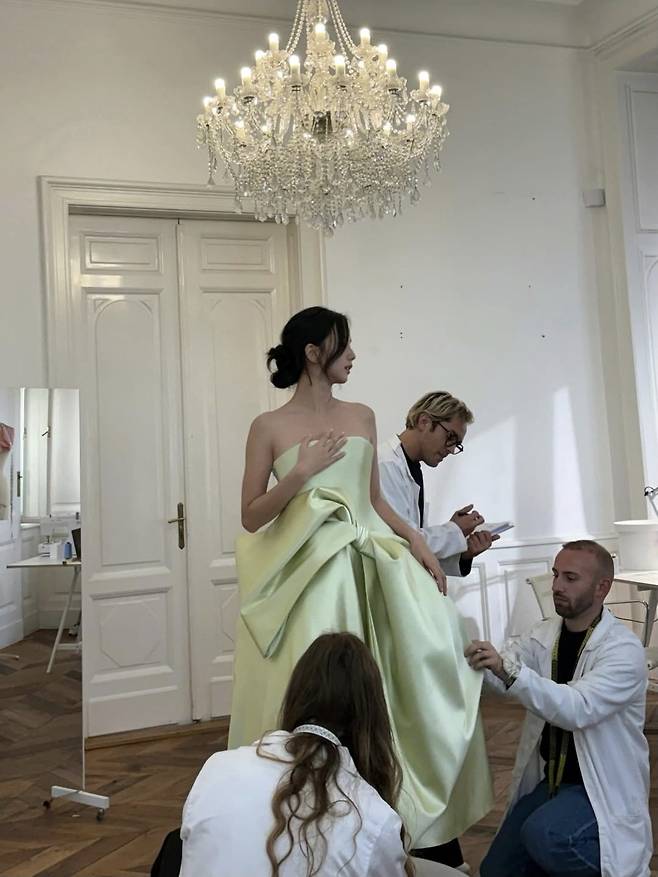 메이크업은 결점을 최소화한 내추럴 톤으로 은은한 핑크빛 블러셔와 생기 있는 립 컬러가 청순미를 강조했고, 여기에 깨끗한 피부 표현과 은근히 빛나는 눈매가 더해져 특유의 우아한 아우라를 완성했습니다.