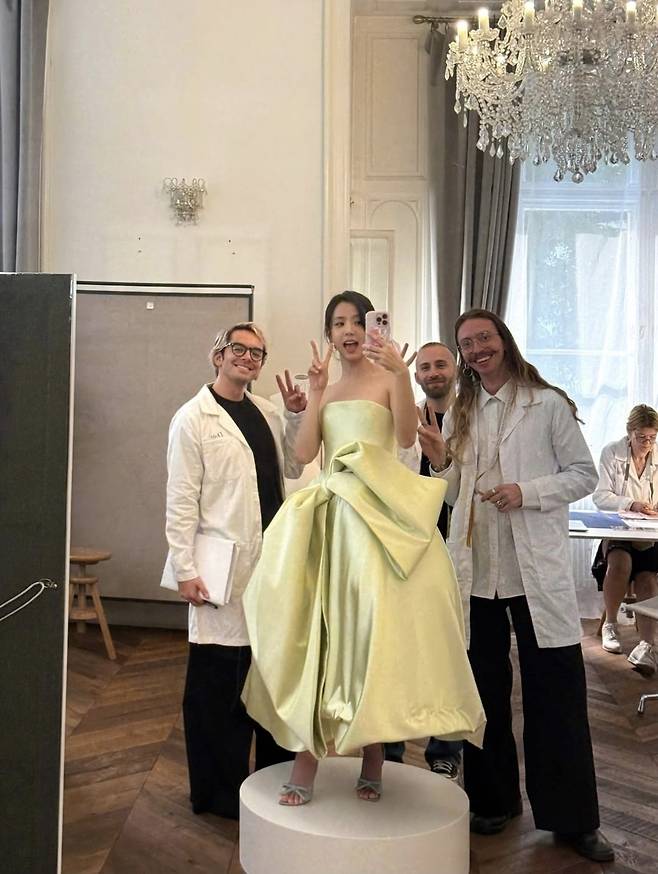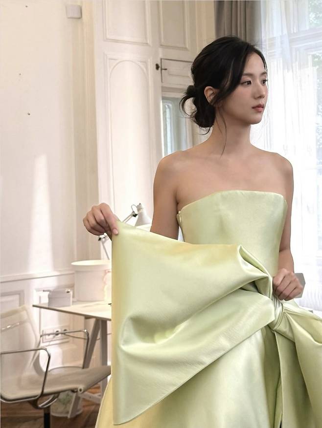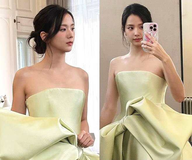 지수는 은은하게 올려 묶은 업두 헤어스타일로 단아하면서도 자연스러운 분위기를 연출했습니다.