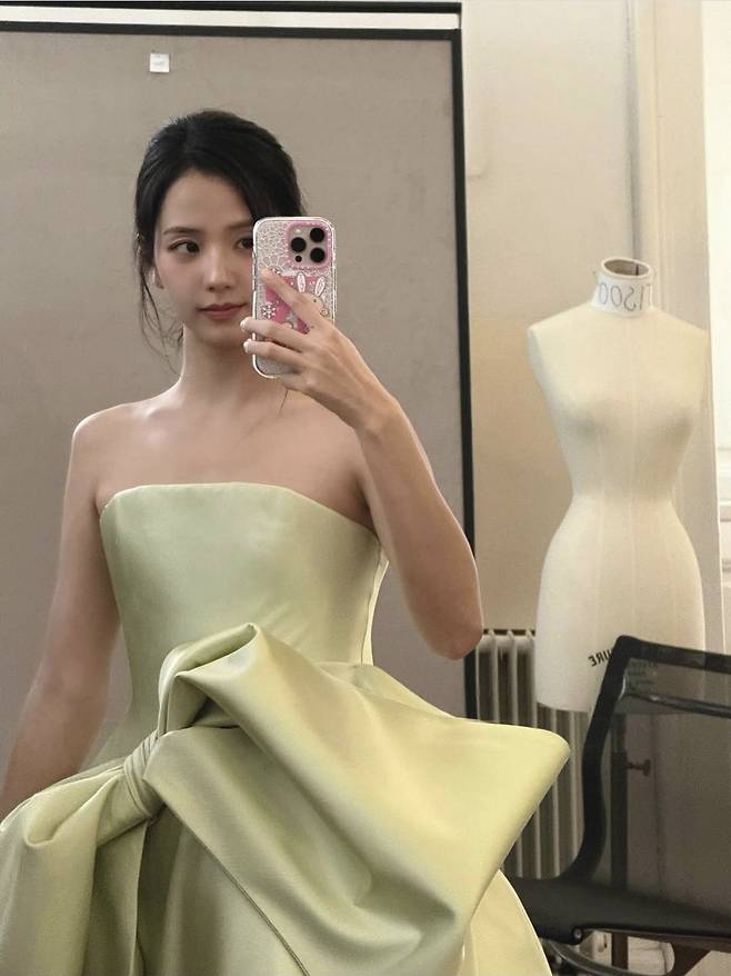 지수는 헤어와 메이크업만으로도 '여신미모'라는 수식어를 다시 한번 입증하며 시선을 압도했습니다.