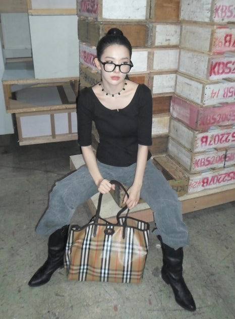 특히 버버리 체크 토트백을 활용한 착장은 빈티지하면서도 시크한 분위기를 자아내며, 무심한 듯 철저하게 콘셉트를 완성한 스타일링으로 눈길을 끌었다.