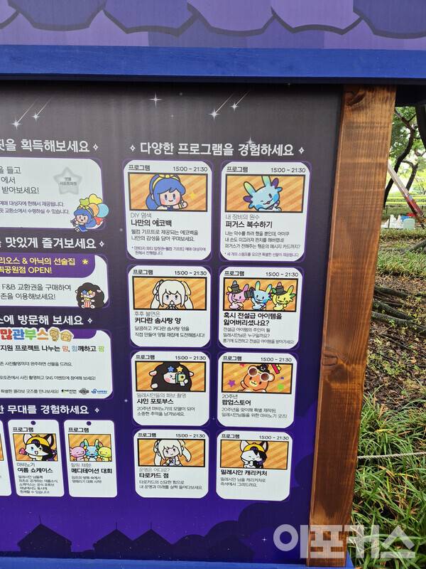 너무 열심히 돌아다니다 보니 휴식 공간이 있었다. 텐트 형태로 마련된 휴게존에 앉아 있으니 20년 전 마비노기를 즐기던 초등학생 시절이 생각났다. 당시에는 게임을 하면 혼나기 일쑤였지만 현재는 주류 문화로 자리 잡았는데, 현장에서 가족 단위로 참가한 밀레시안도 종종 보였다. 사람간의 교류가 단절되는 요즘 오랜 추억을 담고 있는데 여전히 ‘즐길 수 있는’ 게 게임의 순기능이 아닐까.