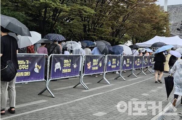 22일 서울시 올림픽 공원 88잔디마당에서는 ‘마비노기 20주년 판타지 파티’가 개최됐다. 이날 비가 내리는 궂은 날씨에도 불구하고 수많은 밀레시안들이 현장을 찾은 모습이었다. 아마 12회 만에 최초로 열린 야외 판타지 파티라 기대감이 높아진 것 같다. 특히 안전을 위해 입장 인원을 제한, 대기열이 발생했음에도 관객의 얼굴은 밝아 보였다.