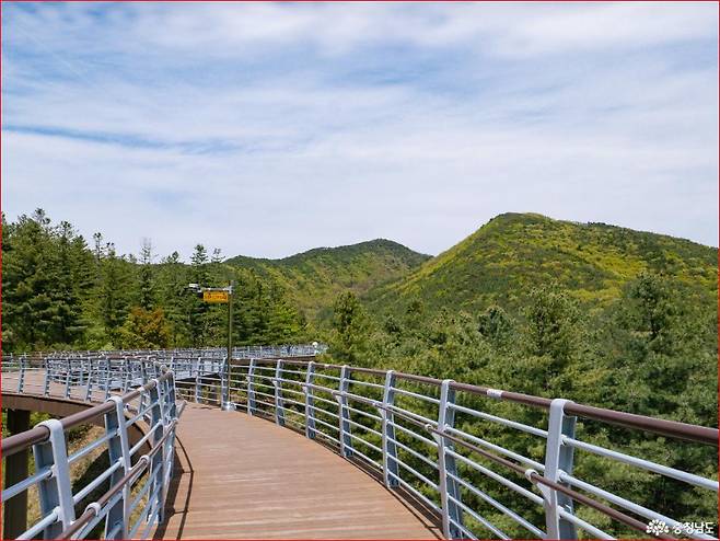 정자와 약초원을 지나면 본격적으로 편백나무숲 산책이 시작됩니다. 이 구역은 피크닉 매트만 펴도 하루 종일 쉬어가기 좋을 만큼 조용하고 깨끗한 분위기를 자랑합니다. 전망대로 이어지는 암석원 탐방길에서는 보령의 산들과 하늘을 맞대는 특별한 풍경이 펼쳐집니다. 조팝나무 꽃은 이제 지고 있지만, 여전히 하얀 꽃잎이 바람에 흩날리는 풍경은 로맨틱한 분위기를 연출합니다. 유채원과 야광나무, 흔들 그네가 있는 이 구역도 방문자들의 인기 포토스폿이니 지나치지 마세요.
