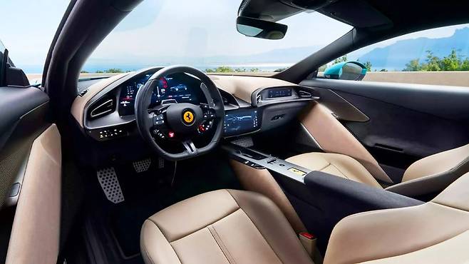 새로운 스티어링 휠에는 물리 버튼과 페라리 고유의 빨간 시동 버튼이 적용됐고, 좌석은 통풍 및 마사지 기능을 포함해 편의성을 높였다.
