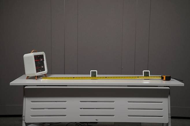 이번 실험에서는 히터와 50cm, 1m 거리를 두고 온도계를 설치한 다음 1시간 뒤 온도 변화를 관찰했습니다.