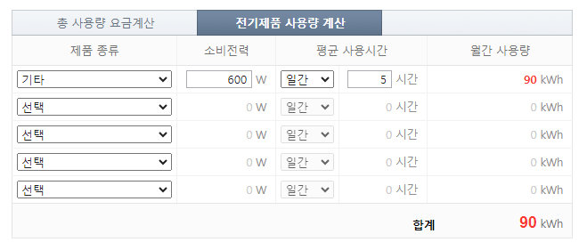 따라서 히터를 하루에 5시간 정도 튼다고 가정했을 때, 소비전력 600W 이하의 제품을 사는 것이 안전합니다.