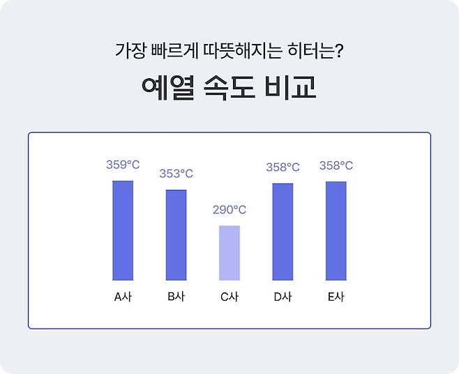그 결과, C사를 제외한 대부분의 히터가 30초 만에 350℃ 이상 예열에 성공했어요!