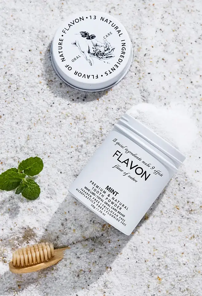 플라본 가루치약_ 가루치약은 단어 그대로 가루 형태의 치약으로 민티드처럼 스테인리스 재질의 패키징이라 재활용률이 높다. 가격대가 있는 편이지만, 사용 가능한 횟수를 생각하면 괜찮은 가격으로 보인다. 고체치약의 단점이 알갱이가 덜 녹는 점인데 플라본 가루치약은 입안에서 완전히 녹아 양치에 불편함이 전혀 없다. 가루 역시 고체치약과 같이 남는 양 없이 끝까지 사용할 수 있어 좋다. 가격은 3만 9,000원.