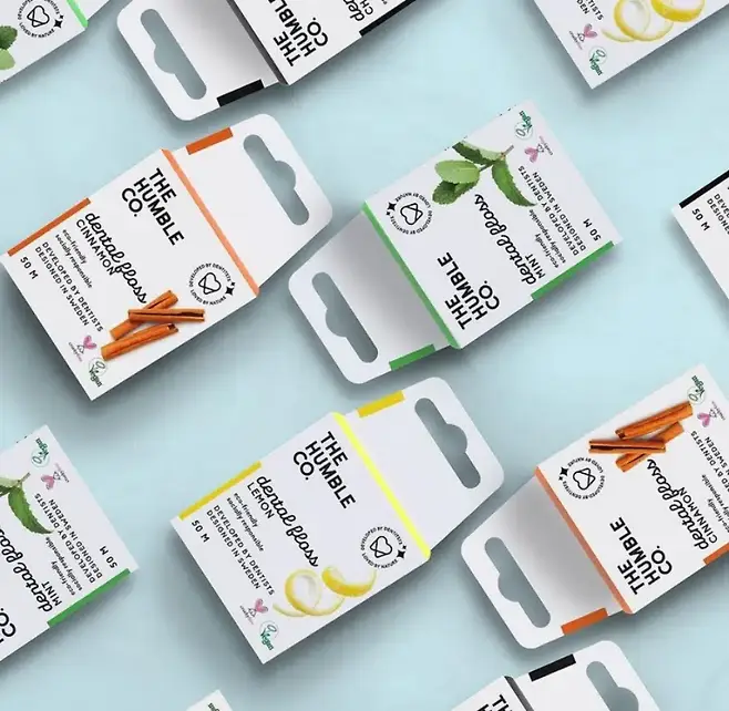 더험블_ 치실부터 패키징까지 친환경이다. 케이스는 플라스틱 패키징이 아닌 종이 패키징이며, 다른 치실 브랜드에서 실에 사용하는 일반적 코팅원료가 아니라 칸데릴라라는 나뭇잎 원료를 사용했다. 가격은 5,000원.