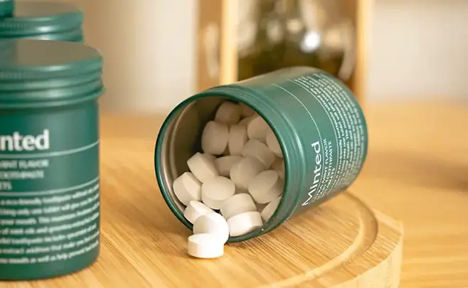 직접 써본 후기_ 튜브형 치약은 치약에 칫솔이 직접 닿아 비위생적인 면이 있다. 민티드 고체치약은 한 알씩 쓰다 보니 위생적인 면이 좋다. 또, 민티드는 외출용으로 들고 다니기도 좋은데 이유는 예뻐서다. 이왕이면 다홍치마인 법.