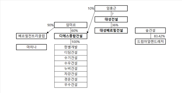 디에스종합건설의 최대주주는 임 회장의 자녀인 임미르 대성베르힐건설 대표(60%)다. 임 회장의 또 다른 자녀인 임예슬 씨도 30%를 보유하고 있다. 1989년생인 임 대표는 대성건설 계열 골프장 '베르힐CC'를 운영하는 베르힐컨트리클럽 지분도 90%를 가지고 있다.