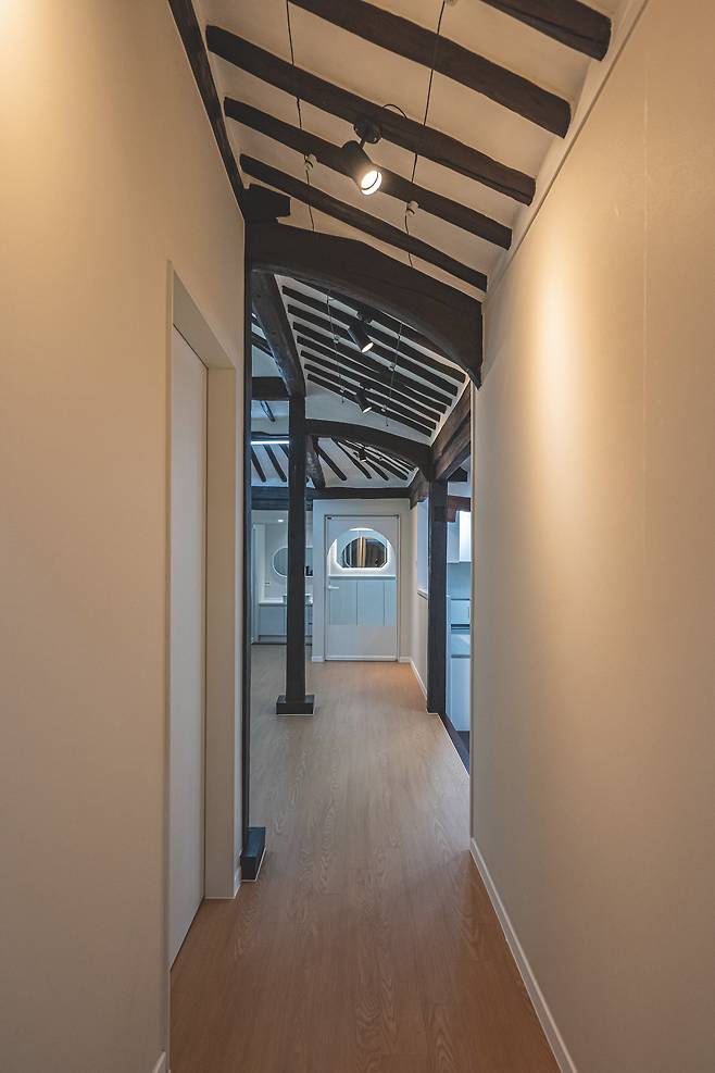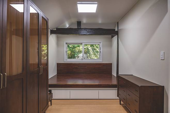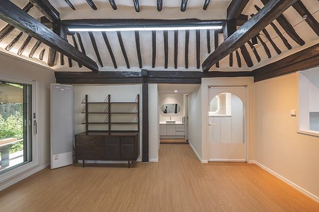전통 한옥의 특징은 방-방 연결 구조지만 담양 주택에는 방의 면적을 조정해 복도를 새롭게 확보하고자 했다. 복도를 통해 프라이버시는 물론 명확하고 효율적인 동선도 달성할 수 있었다. 그리고 거실과 복도는 과감하게 천장을 오픈해 서까래를 노출함으로써 구조부 자체가 공간의 장식이 되는 한옥의 매력을 살렸다.