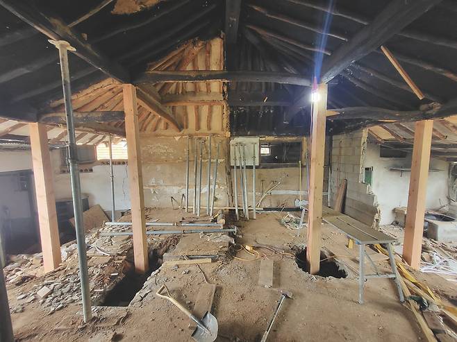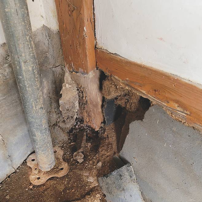 철거 중 발견되는 은폐된 부식은 빠르게 대응해야 한다. 해당 사례에서는 썩은 기둥이 여러 개 발견돼 전문 대목수가 1주일 간 기둥 교체 작업을 진행했다.