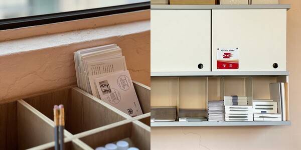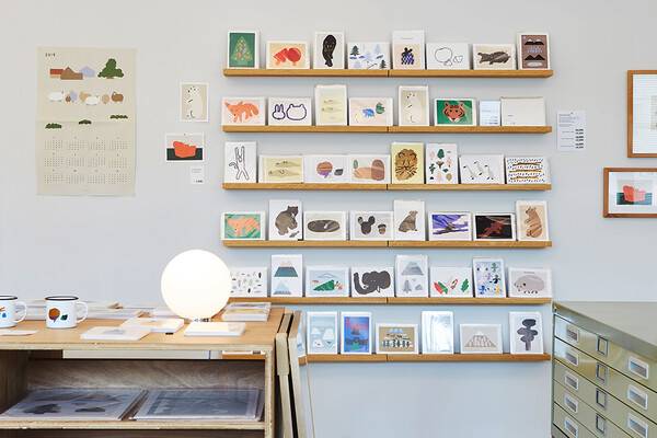 가게 내부에는 줄 맞춰 진열된 수많은 엽서들로 작은 미술관에 온 듯한 기분이 듭니다. 엽서는 사진, 일러스트, 텍스트 등 다양한 이미지로 구성되어 있으며 팝업 형태의 엽서도 있습니다.