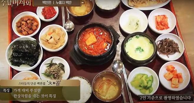 tvN '수요미식회'에 소개된 맛집이다. 백반 상차림을 소개하며 문 닫기 전 반드시 가봐야 할 백반집 중 하나로 선정했다. 10가지가 넘는 반찬들과 함께 푸짐한 한상을 먹을 수 있는 곳이다. 밥과 국이 나오는 ‘가정식 백반’과 누룽지가 나오는 ‘누룽지 백반’ 중 선택할 수 있다. 제육볶음은 백반 상차림에 추가로 주문이 가능하다. 제육볶음 외에도 생선구이, 생선 조림, 스팸구이 등 추가할 수 있는 메뉴도 다양하다.