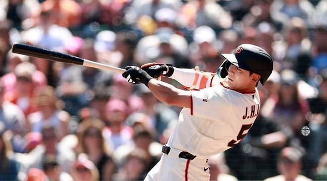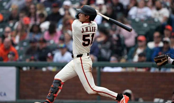 이날 오라클 파크의 주인공은 단연 이정후였습니다. 다시 리드오프(1번 타자) 임무를 맡은 그는 경기 시작과 동시에 마이애미 마운드를 폭격했습니다. 1회말 첫 타석에서 상대 선발 맥스 마이어의 시속 152km(94.5마일) 직구를 받아쳐 우중간을 꿰뚫는 시즌 1호 3루타를 만들어냈습니다.