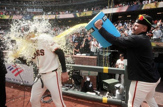 경기가 끝난 뒤 데일리 MVP로 선정되어 방송 인터뷰에 나선 이정후는 동료 윌리 아다메스로부터 시원한 음료수 세례를 받았습니다. 일종의 축하 세리머니였지만, 물에 흠뻑 젖은 이정후는 환한 미소를 지으며 "이런 세례라면 언제든, 자주 맞고 싶다"는 넉살 좋은 소감을 남겨 팀 분위기를 훈훈하게 만들었습니다.